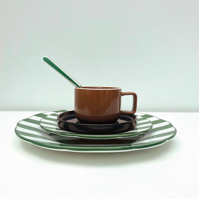 Tasse chic brun sous tasse bleu